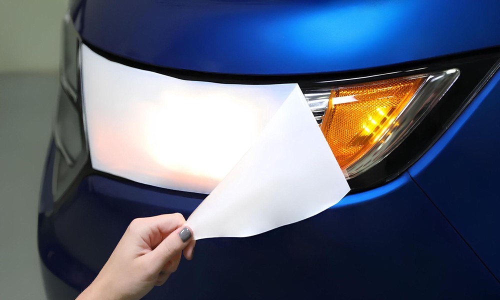 Temporary films for automotive headlamps are thin, transparent polymer layers applied directly to the headlamp surface. They are typically made from materials such as polyethylene (PE), polyurethane (PU), or thermoplastic polyurethane (TPU), combined with specially formulated adhesives that ensure secure attachment and clean removal.